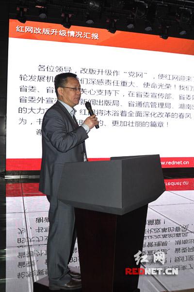 (中南传媒董事、红网党委书记、董事长舒斌介绍了去年11月以来红网改版升级的情况和下一步工作计划。)