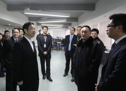 湖南省委书记周强在中南传媒董事长龚曙光(右三)陪同下视察天闻数媒公司