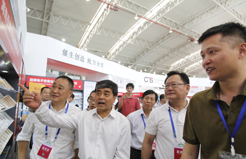 国家新闻出版广电总局副局长吴尚之在7月28日上午视察湖南展馆时详细了解了岳麓书社“四大名著”(名家演播版)的情况,他对这套图书的出版表示肯定:“你们通过与新技术的融合,把‘四大名著’搞活了。读者是多样的,需要纸介质,也需要聆听,你们这种融合发展做得很好?!?
