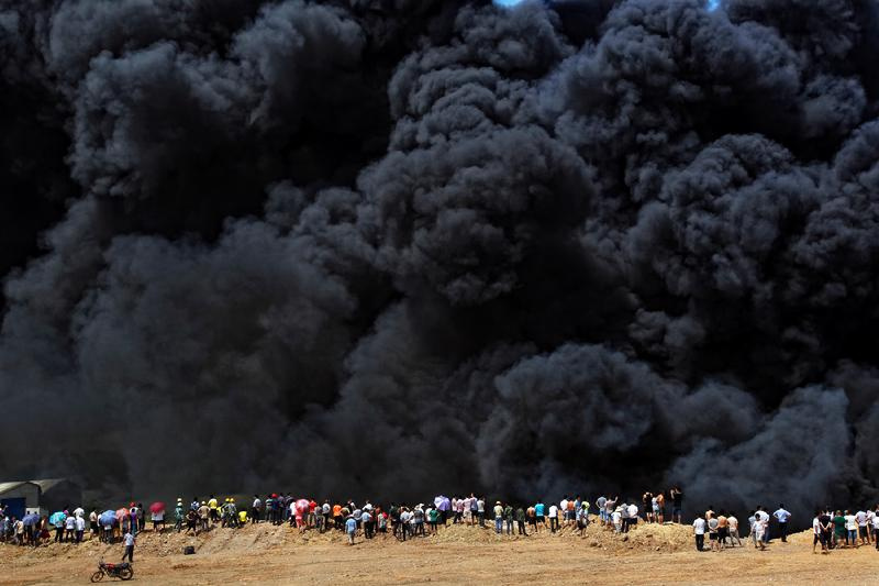 2013年7月2日,长沙浏阳河黄兴大桥附近,两个复合地板仓库起火,火势借着风势蔓延,冒出的滚滚黑烟,几乎全城都看得到?;;匾?,当天他刚好从浏阳出差回来,经过高速收费站时看到远处浓烟漫天。凭着职业敏感,他第一时间赶到现场,拍下了这张图片。