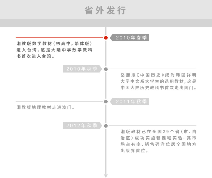 作为在国家新一轮课程改革背景下成立的专业化营销公司,承担着集团拥有自主知识产权的国家新课程标准实验教材(教参、教辅)及相关多元化产品、湘版图书在全国范围内的规模化推广与服务。